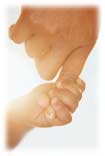 up hands and turn them front to back, then point to child’s hands)