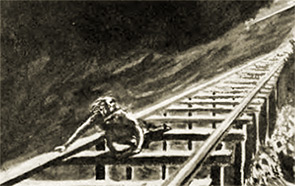 She ran out into the darkness and crawled out on the trestle